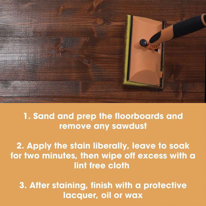 Protecție (importantă): Baițul colorează doar lemnul. Pentru a proteja podeaua de uzură, apă și pete, este imperativ să sigilați culoarea cu un lac de podea adecvat sau ulei de lemn după uscare.