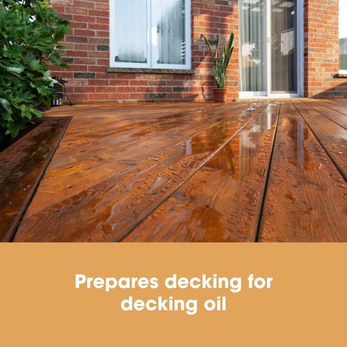 2. Înainte de aplicarea uleiului sau vopsire: Curățați întreaga zonă cu preparatul. Acest lucru va „deschide” lemnul, îndepărtând murdăria care împiedică uleiul să pătrundă în profunzime.