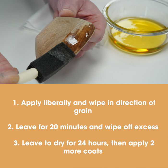 - Aplicare: Folosiți o lavetă sau o pensulă fără scame. Aplicați uleiul din abundență, urmând direcția fibrei lemnului.