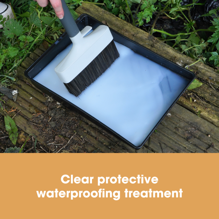 Formula noastră avansată de impregnare a lemnului este complet rezistentă la apă și intemperii. Odată aplicată, creează o barieră puternică, invizibilă , care respinge umezeala, ajută la prevenirea crăpării și deformării lemnului și oprește dezvoltarea mucegaiului. Este soluția perfectă pentru protecție pe tot parcursul anului.
